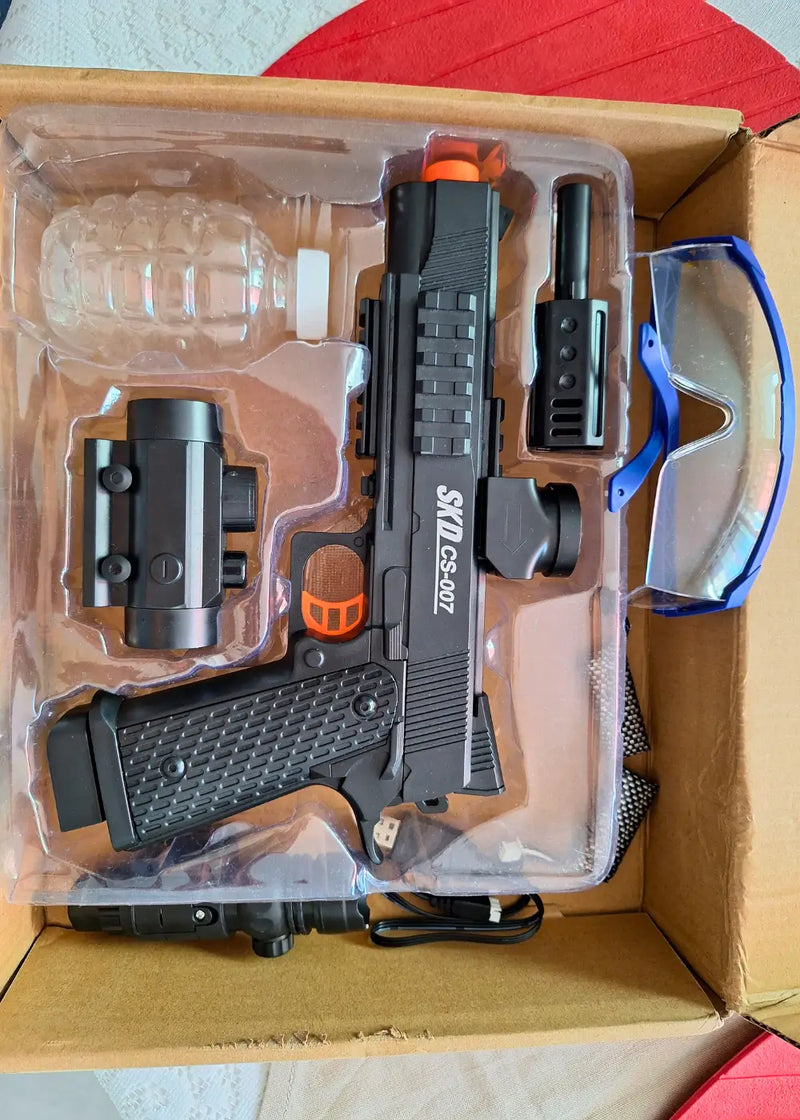 💥 Domina tus partidas con el Pistola de Hidrogel | GLE ! Este bláster eléctrico GLE está diseñado para ofrecerte una experiencia de disparo intensa y realista. Equipado con varios accesorios tácticos, este modelo es ideal para todos los fans de juegos al aire libre, ofreciendo potencia, precisión y seguridad.